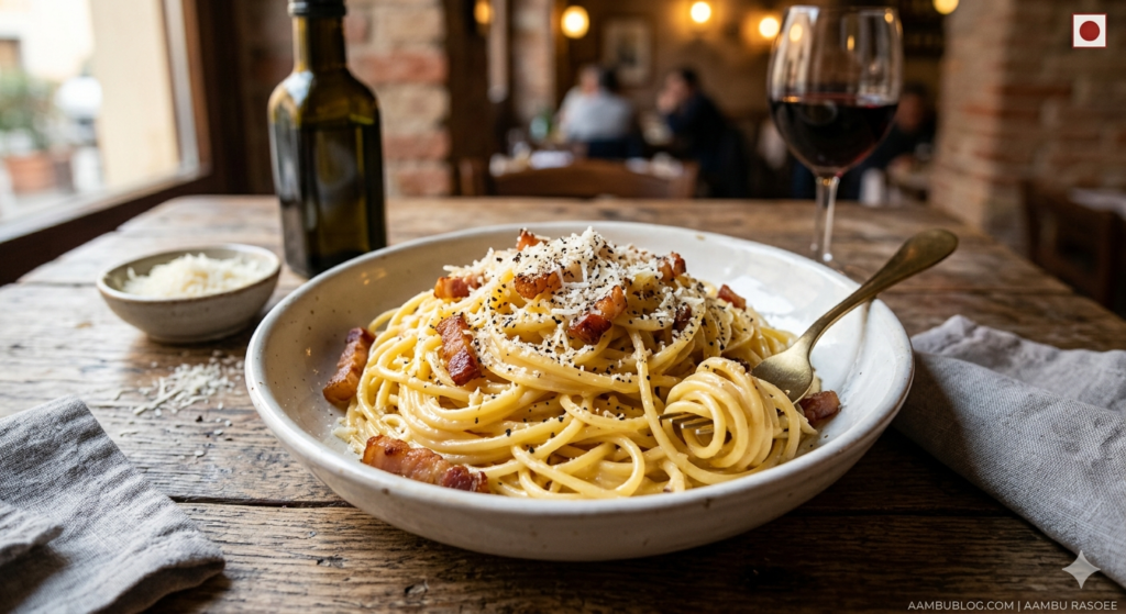 🔴 Non-Veg / Contains Egg | 🥘 Main Course / Italian Cuisine Spaghetti Carbonara is perhaps the most famous pasta