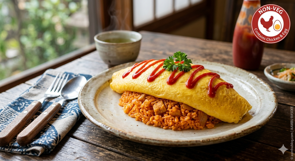 🔴 Non-Veg / Contains Egg & Chicken | 🥘 Main Course / Japanese Fusion Omurice (Omelette + Rice) is a
