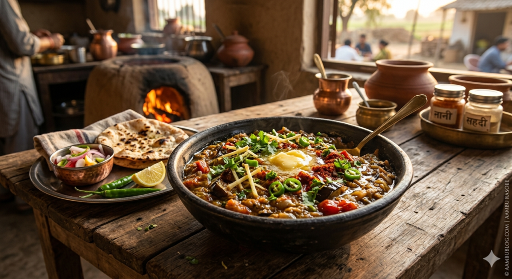 🟢 Pure Veg | 🥘 Main Course Baingan Bharta is a rustic, flavorful dish made by roasting eggplants over an